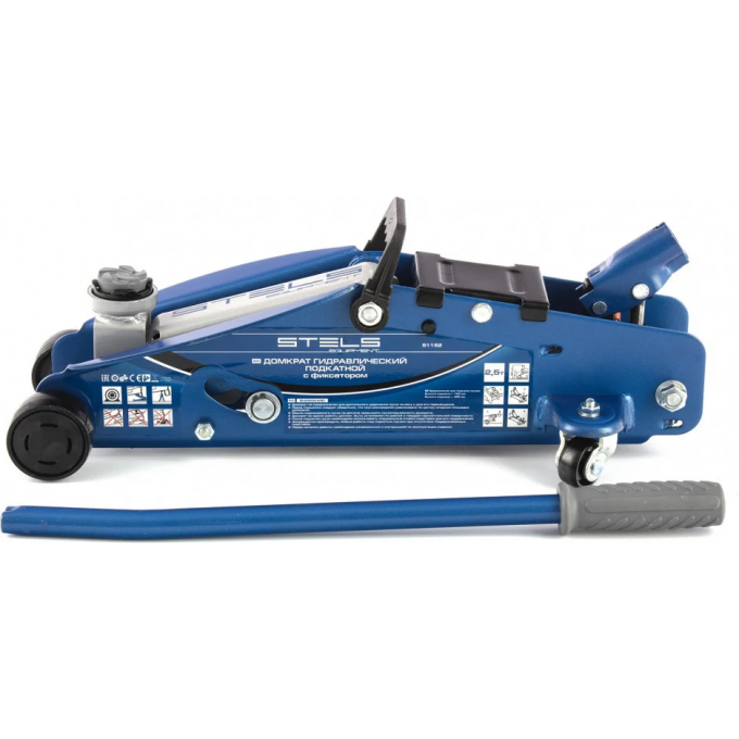 Защитный клапан предохраняет домкрат от перегрузки при попытках поднять автомобиль тяжелее 3 тонн. Двухплунжерный насос сохраняет работоспособность даже при выходе из строя одного из плунжеров - домкрат будет работать за счет второго насоса. Хромированные штоки и резиновые сальники обеспечивают износостойкость оборудования. Масленка для смазывания оси лапы позволяет продлить срок службы домкрата.