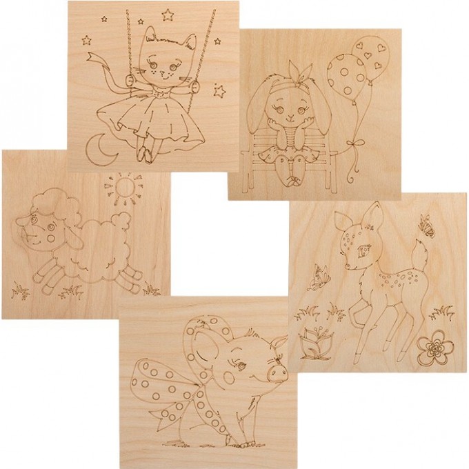 Доски для выжигания REXANT «МАЛЫШИ ЗВЕРЯТА», 150х150 мм, 5 шт., пакет 12-0933