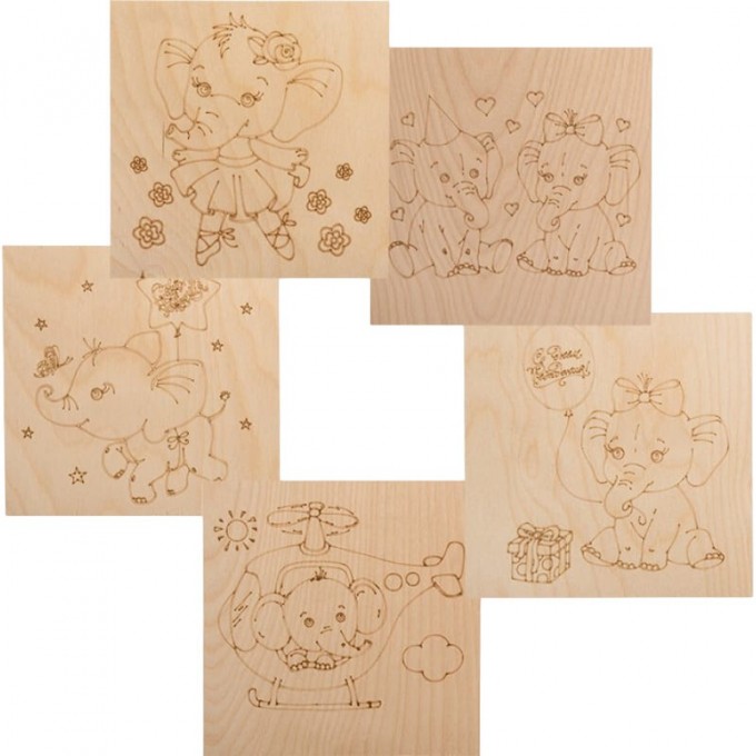 Доски для выжигания REXANT «СЛОНЯТА», 150х150 мм, 5 шт., пакет 12-0932