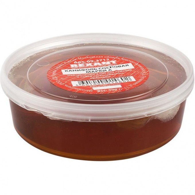 Канифоль сосновая марки А 500 г REXANT предназначена для удаления тонких и нестойких оксидов с поверхности под пайку, улучшения растекания жидкого припоя при пайке печатных плат и радиокомпонентов.