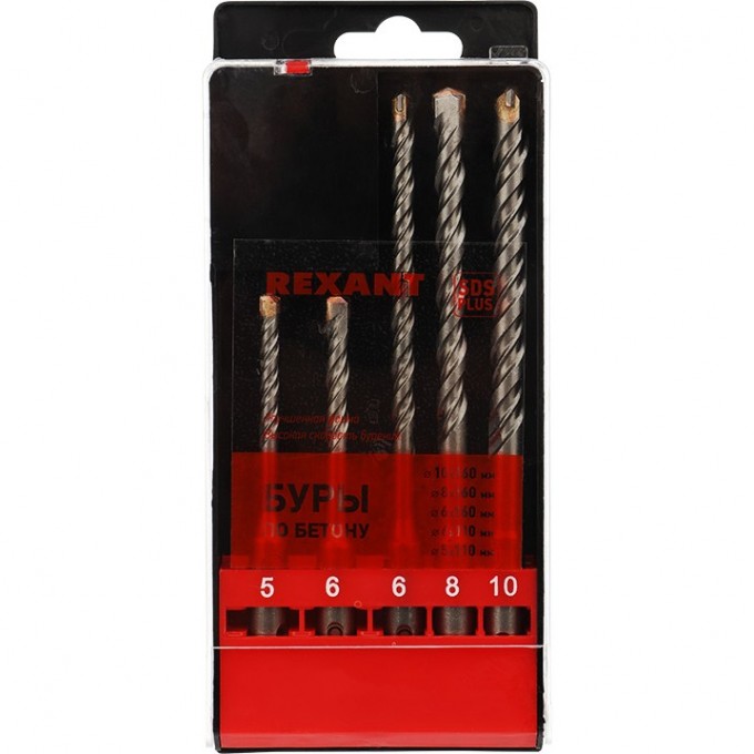 Набор буров по бетону REXANT 5-6 х110, 6-8-10 х160 мм sds-plus, 5 шт. 91-0406