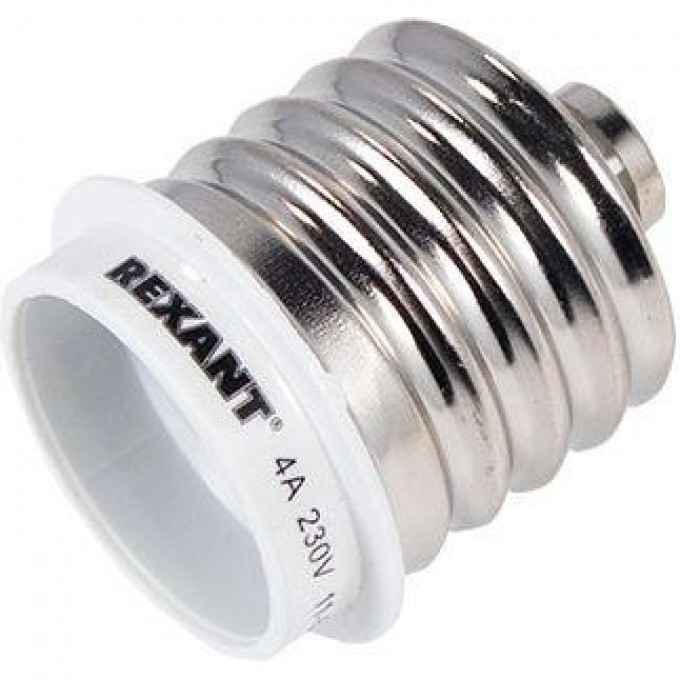 Переходник цокольный E40-E27 REXANT применяется при переходе от электрических ламп с цоколем Е40, к электрическим лампам с цоколем Е27. Товар распространен в сфере строительства, при монтажных работах и в быту, когда нужно заменить один тип цоколя лампы на другой. Резьбовая система быстрого соединения электрических ламп обеспечивает надежный контакт.