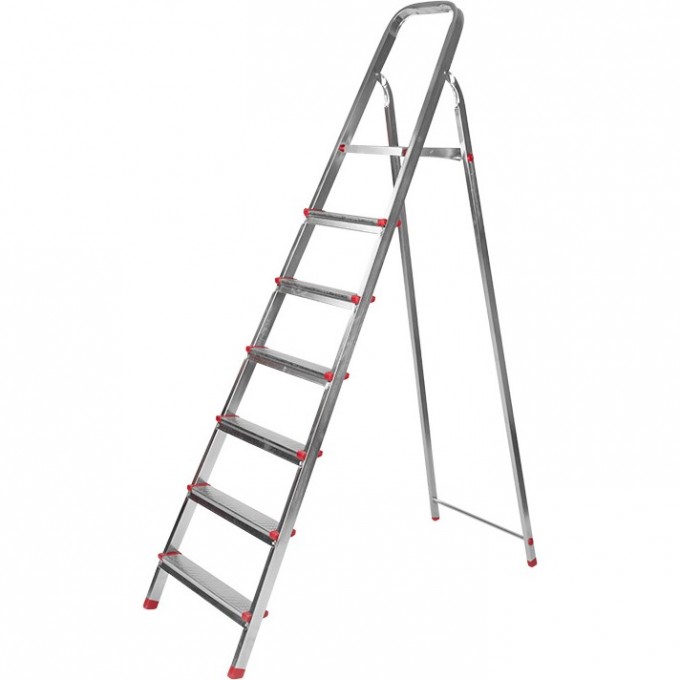 Стремянка металлическая состоит из 7 ступенек, применяется как в строительных целях, так и в быту, дома, на даче, в гараже и саду. Специальное соединительное ушко обеспечивает устойчивость конструкции и надежную фиксацию оборудования в рабочем положении. Ножки лестницы изготовлены в пластиковом покрытии; это предотвращает скольжение и защищает напольное покрытие от царапин, а упрочненное крепление ножек предотвращает их выпадение. Гальваническое покрытие гарантирует устойчивость к коррозии и защищает от негативного воздействия окружающей среды. Стремянка из усиленного профиля с 7 широкими ступенями с противоскользящим рифлением не занимает много места. Использование качественных материалов позволяет нагружать стремянку массой до 150 кг.